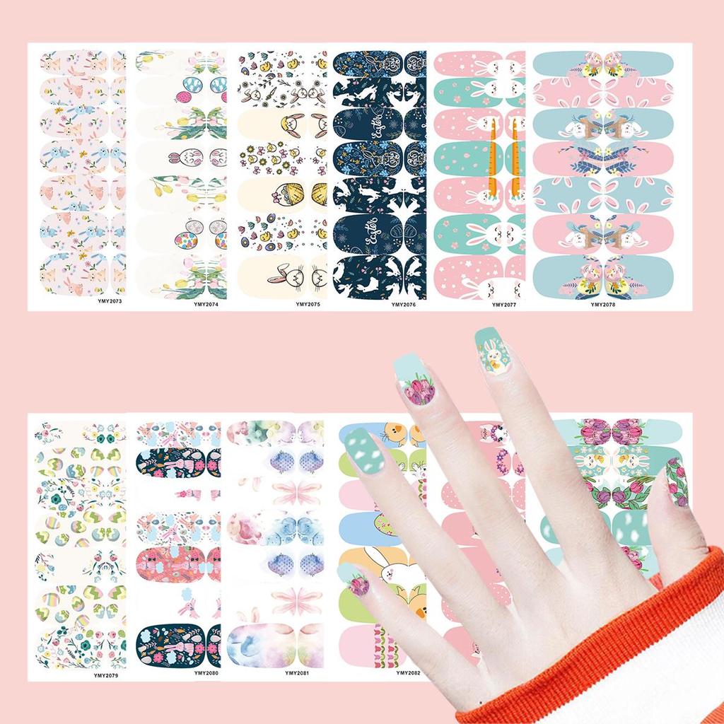 Easter Cute Rabbit Flower Nail Art Stickers - Full Cover, Waterproof, Long-lasting (YMY2073-2084)