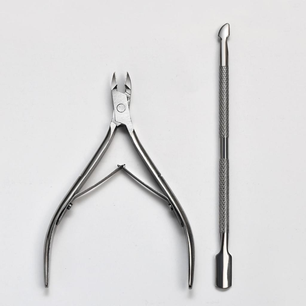 Stainless Steel Cuticle Pusher & Scissors Set - 2-Piece Manicure Tool Kit