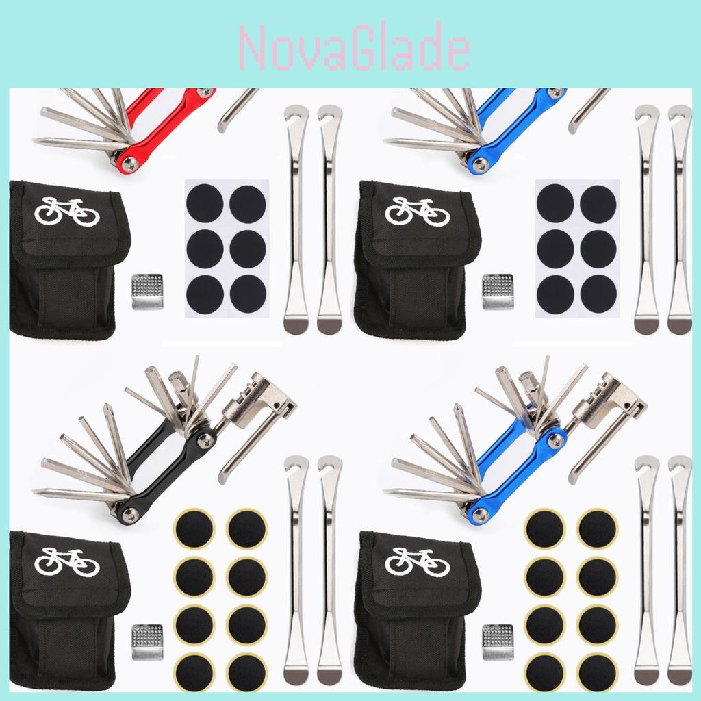 This 16-in-1 bicycle repair kit features durable materials designed for efficient maintenance of mountain and road bikes. It includes multi-purpose wrenches, tire levers, and patch kits, with dimensions tailored for portability and ease of use. The set supports quick repairs during outdoor rides. Keep tools clean by wiping with a damp cloth after each use.