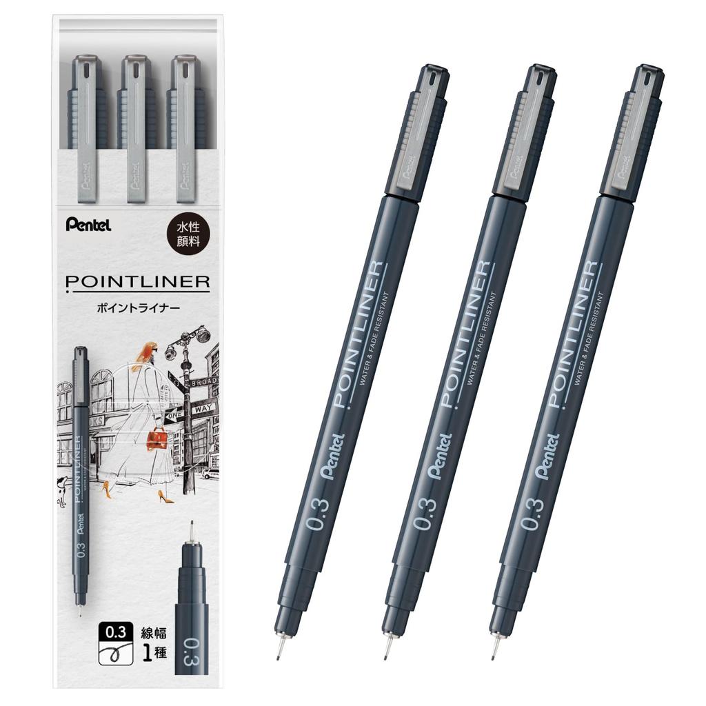 Pentel Point Liner Set mit wasserbasiertem Stift, 0,3 mm, Schwarz, 3 Stück, S20P-3AD3H