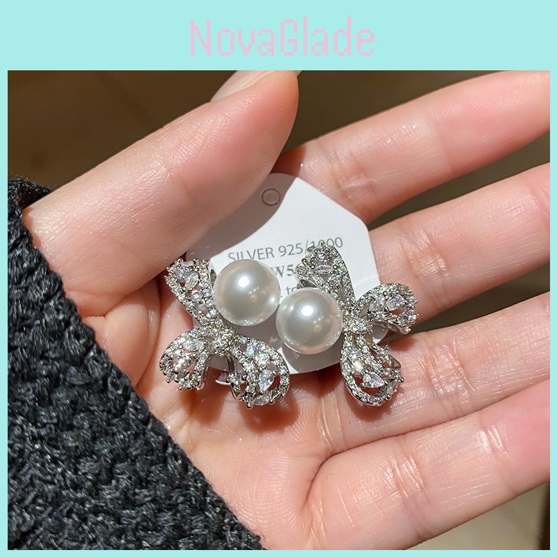 Minimalistische Zirkonia Schmetterling Schleife Ohrstecker Ringe Mit Künstlicher Perle Für Frauen Sommer Mode