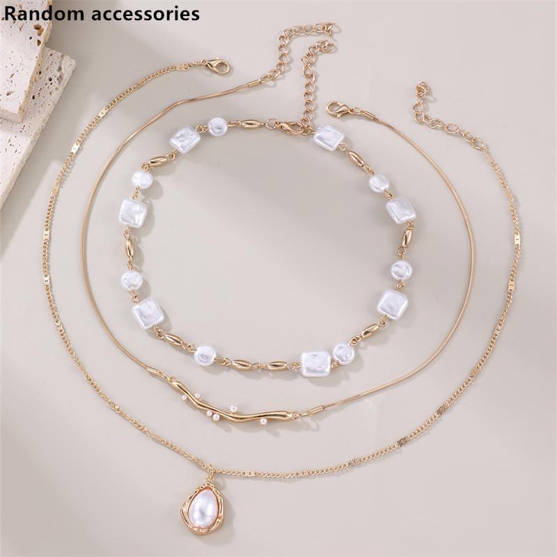 Geometric Artificial Pearl Pendant Necklace For Women With Multilayer Chain Summer Style