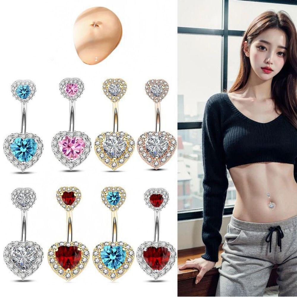 Liebe Zirkon Bauchnabelring Strass Körperpiercing Schmuck Doppelherz Bauchnabelring Mädchen