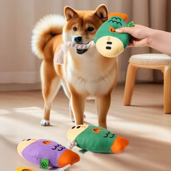 The built-in squeaker adds engaging sound to relieve boredom and reduce anxiety when your dog is alone. Featuring a cute fat-headed fish shape, it captures your pet's attention and encourages interactive fun. Made from high-quality, non-toxic, and skin-friendly materials, this safe chew toy ensures enjoyable and secure playtime for your furry friend.