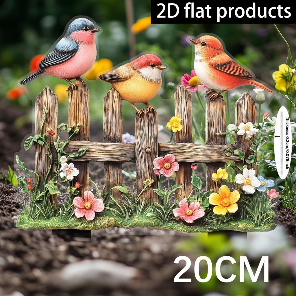 Acrylic 2D Bird Garden Fence Ornament, Hanging Decor for Planter & Patio, Funny Garden Art & Friend Gift