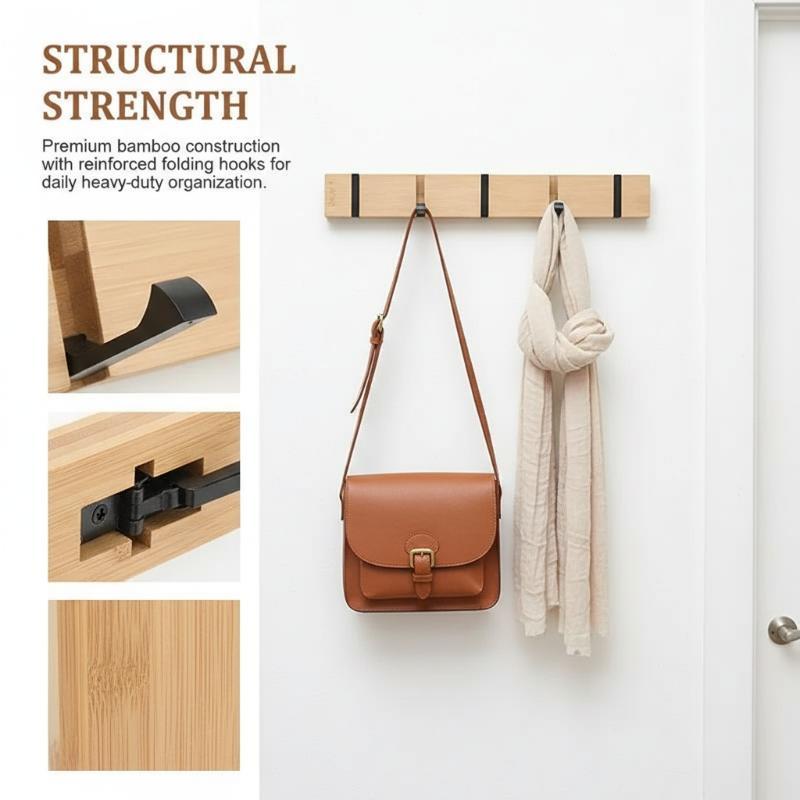 Garderoben-Organizer Wandhängend Bambus Schlüsselhaken Halter Gestell Haken Garderobenhaken Mit 5 Ausziehbaren Haken Heimdekoration