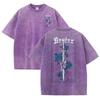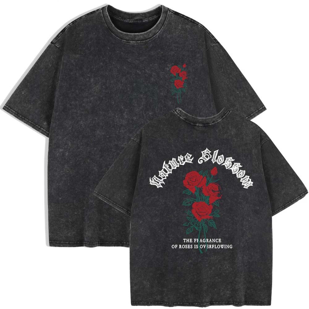 Natur Rosen Blumen Druck Gewaschene T-Shirts Damen Baumwolle Kurzarm Oberteile Sommer Rundhals Oversize T-Shirts Kleidung