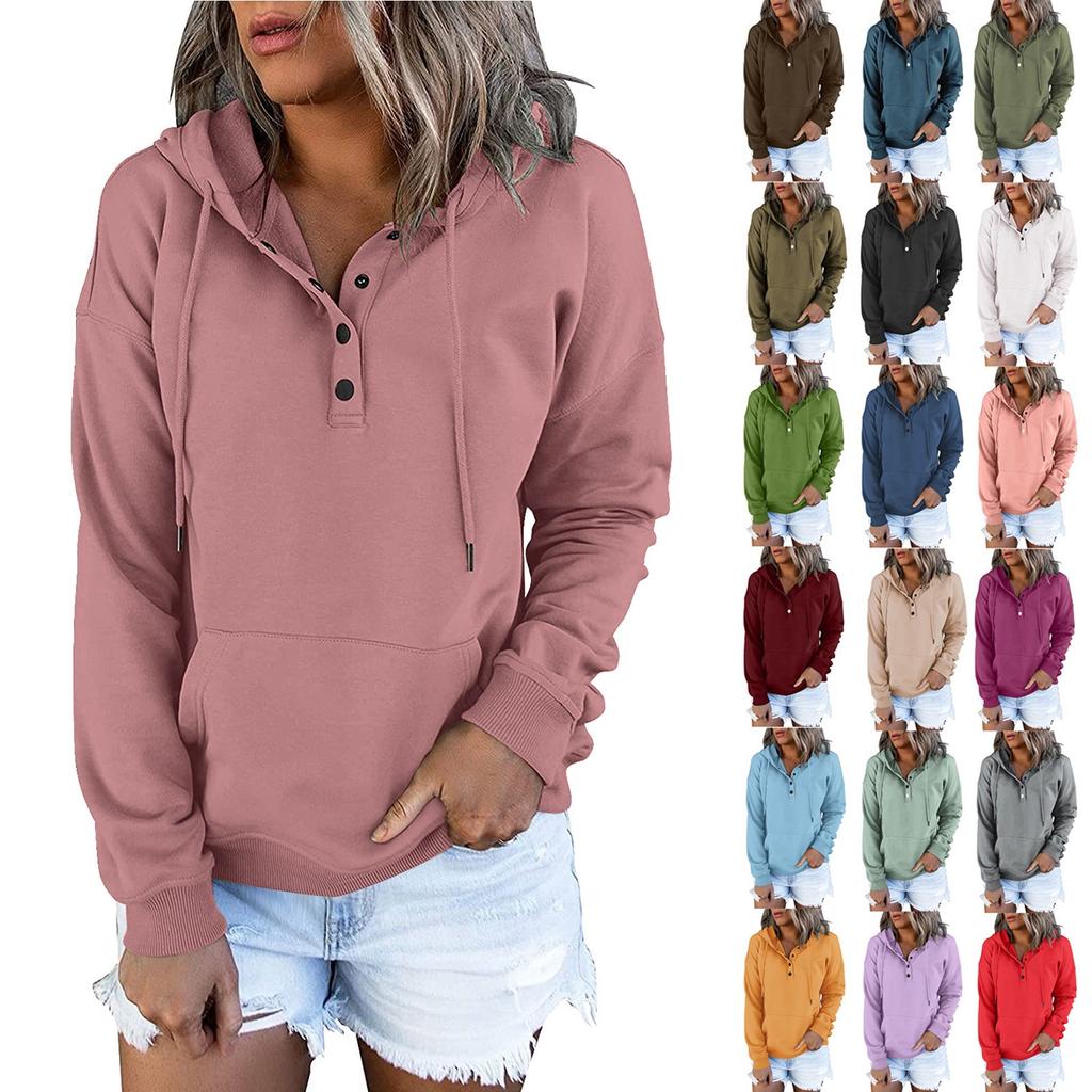 Damen Pullover Hoodies Tops Lässige Button-Down-Sweatshirts mit langen Ärmeln und Taschen