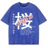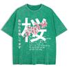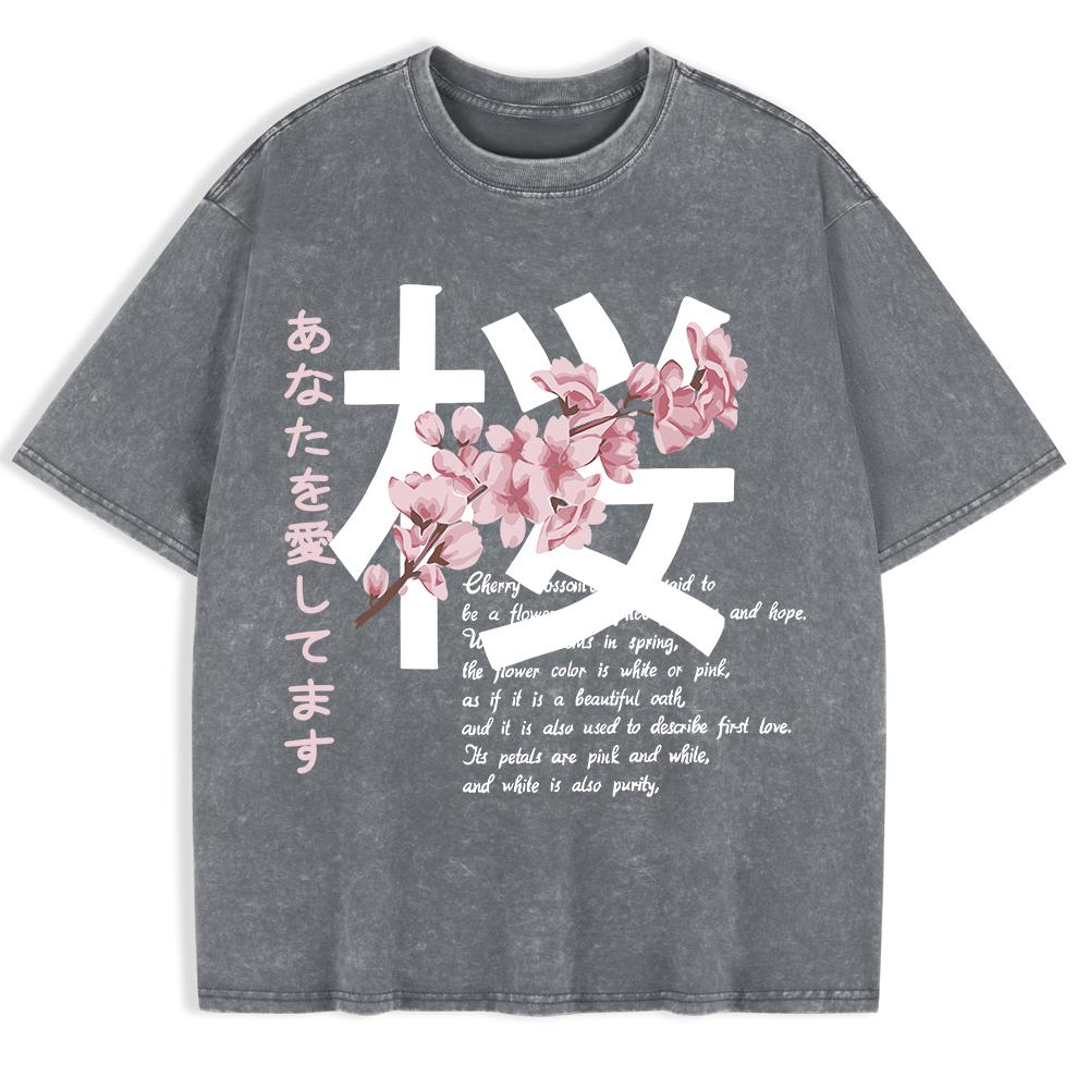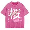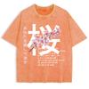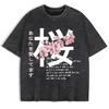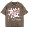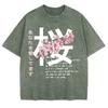 Japan Kirschblüten Aufdruck Gewaschene T-Shirts Herren Baumwolle Kurzarm Oberteile Sommer Rundhals Oversize T-Shirts Basic Kleidung