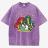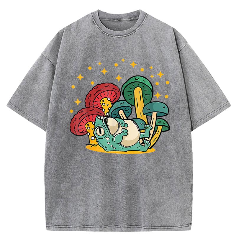 Pilz Cottagecore Ästhetik Frosch Aufdruck Gewaschenes T-Shirt Damen Sommer Locker T-Shirt Street Kurzarm Kleidung