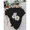 WomenS Casual DDaisy Print TShirt Short Sleeve White Daisies and Green Leaves Design Ladies T Shirts Daily Wear