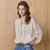 The Flower Lace Frill Blouse ZDR6161161 features floral lace throughout, providing a light and soft feel with a subtly sheer lace material. The front is neatly arranged without visible buttons, giving a clean impression, and the frill details on the chest line and sleeves add natural volume. The loose fit allows for comfortable wear, making this blouse a great choice for a statement piece.