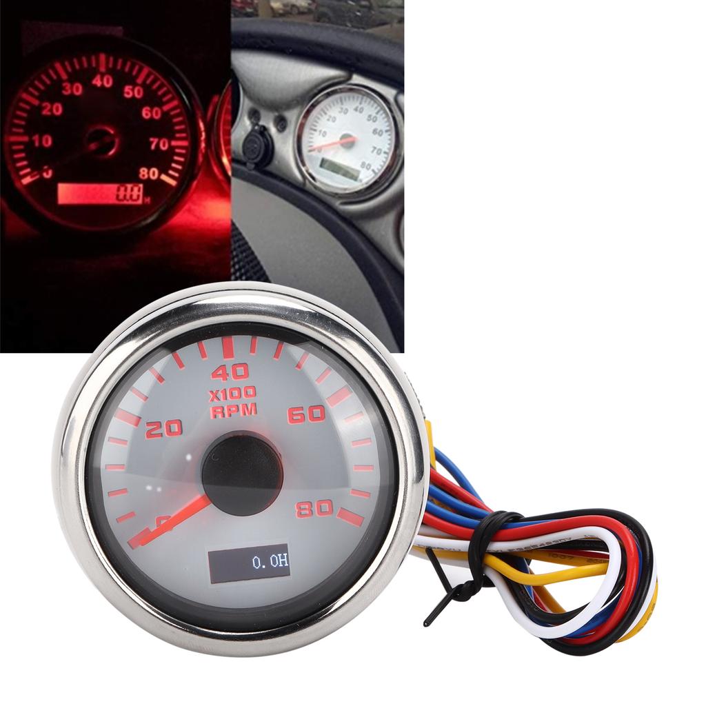 52mm Marine Pointer Tachometer Gauge Red Backlight for Motorcycle Car Truck Boat Gasoline Engine 932V