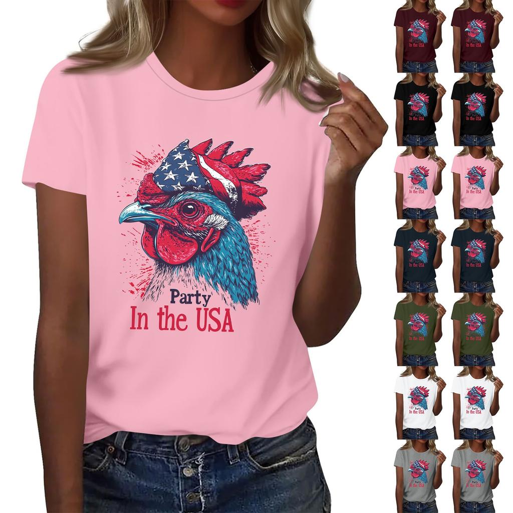 Damen Rundhals Casual Independence Day Bedrucktes Kurzarm T-Shirt Top