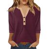 Damen T-Shirt mit Aufdruck, Knopfleiste, 3/4-Ärmel, für den Alltag, Wochenendmode, Basic, V-Ausschnitt, normales Oberteil