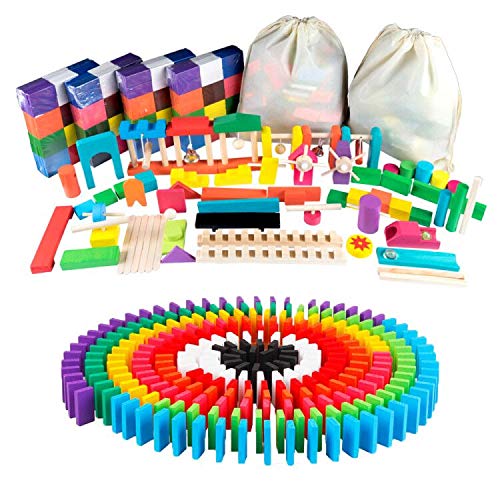 Bajoy Dominosteine, 480 Stück, 43 verschiedene Mechanismen, japanische Anleitung, Aufbewahrungsbeutel enthalten. Buntes Holzspielzeug, das auch Erwachsene genießen können. Perfekt