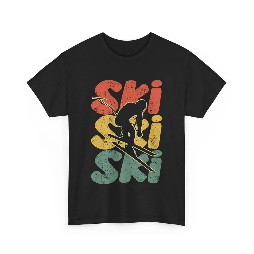 Ski T-Shirt Skifahren Wintersportler Skifahrer Silhouette Vintage