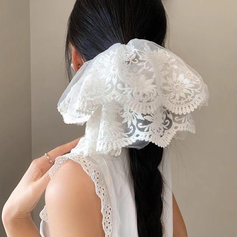 Korean Princess Style White Lace Mesh Scrunchie Oversized Luxury Hair Accessory for Women