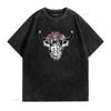Damen Schottische Hochlandkuh Rinder Haarige Blumen Damen T-Shirt Schwarz Vintage Gewaschen Designer-Kleidung Dehnbar Mode