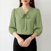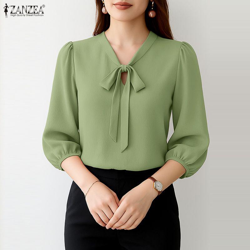 ZANZEA Lässige Bluse mit V-Ausschnitt und 3/4-Ärmeln für Damen in Volltonfarbe