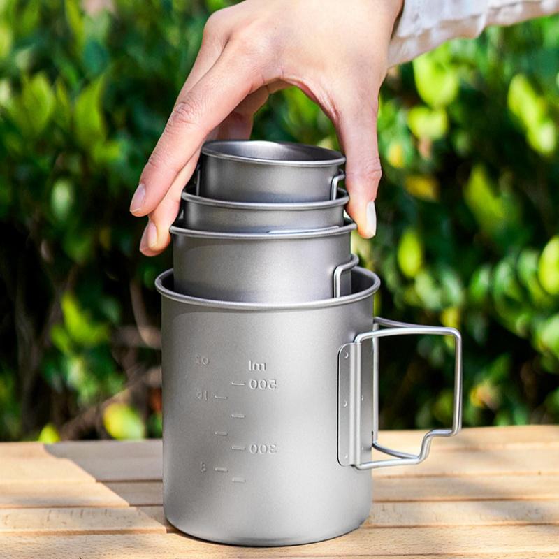 4-teiliges Set Reines Titan Faltbarer Campingbecher Leicht Tragbar für Outdoor-Wandern & Picknick 200ml 300ml 450ml 750ml