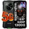 DOOGEE Fire 7 Rugged Smartphone 5G, Android 15, 13000mAh/18W, 16GB+256GB/2TB, 6.6” HD+ 90Hz Octa-Core Android Phone, 64MP+16MP