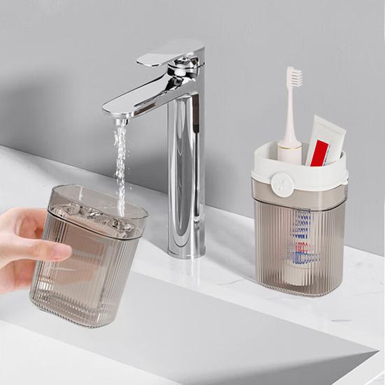 All-in-One-Integration: Kombiniert Zahnbürstenhalter, Zahnpastafach und Mundspülbecher zu einer einzigen Einheit. Diese clevere Integration eliminiert die Notwendigkeit, mehrere separate Gegenstände mit sich zu führen, strafft Ihre Toilettenroutine und bietet bequemen Zugriff auf alle Mundpflege-Notwendigkeiten in einem kompakten Behälter.
