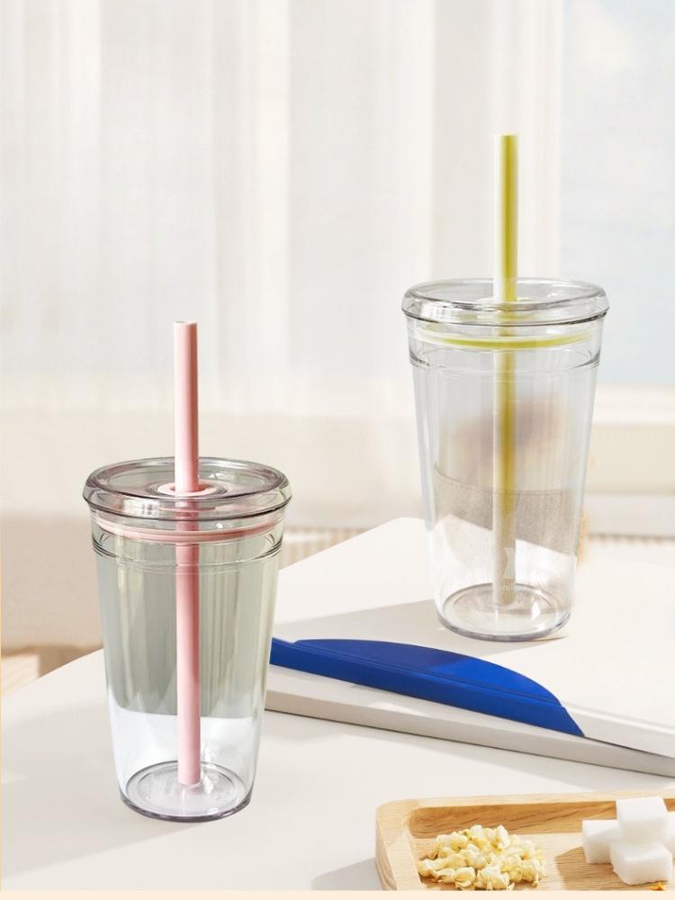 450ml Kunststoff-Strohhalmbecher Tragbarer Milchkaffee-Strohhalm Kunststoffbecher Kalt- und Heißkaffee-Becher Büro-Wasserbecher Auto-Saftgetränkebehälter