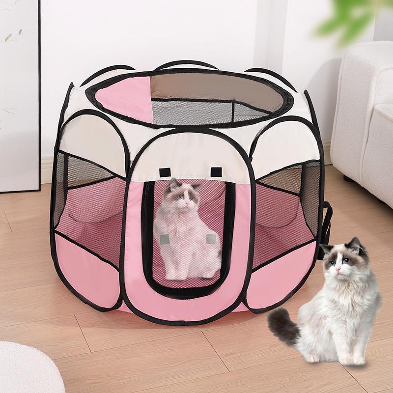 Pet Octagonal Cage & Fence: 600D Oxford Cloth, Washable & Scratch-Resistant for Cat & Dog Birthing.