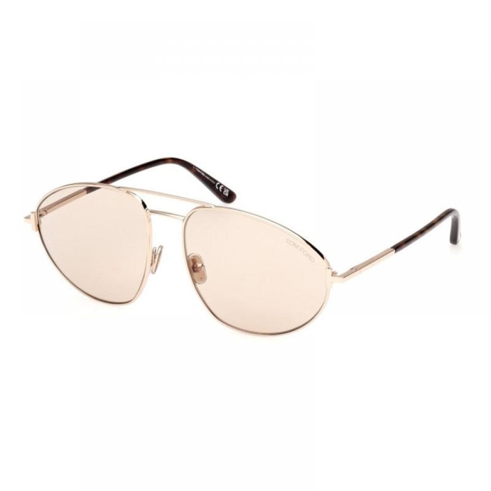 The Tom Ford Aviator Full Rim sunglasses feature a shiny gunmetal frame paired with brown lenses, showcasing a stylish design. These sunglasses provide excellent visibility and complement any fashion style.