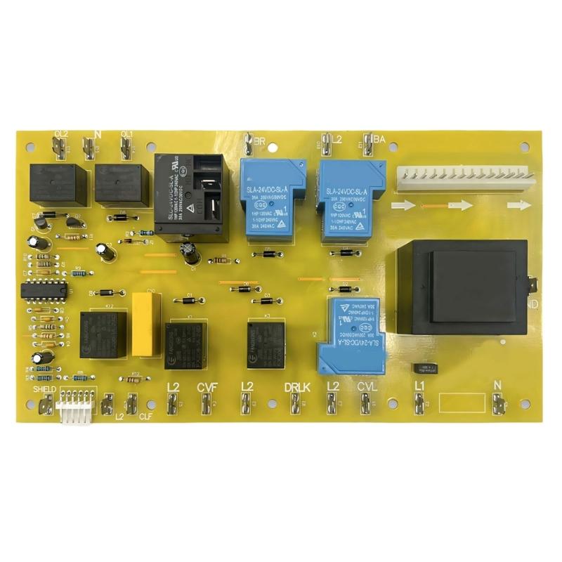 The cores of this control board is a PCB circuit board, with electronic components such as relays, capacitors, and resistors mounted on its surfaces.