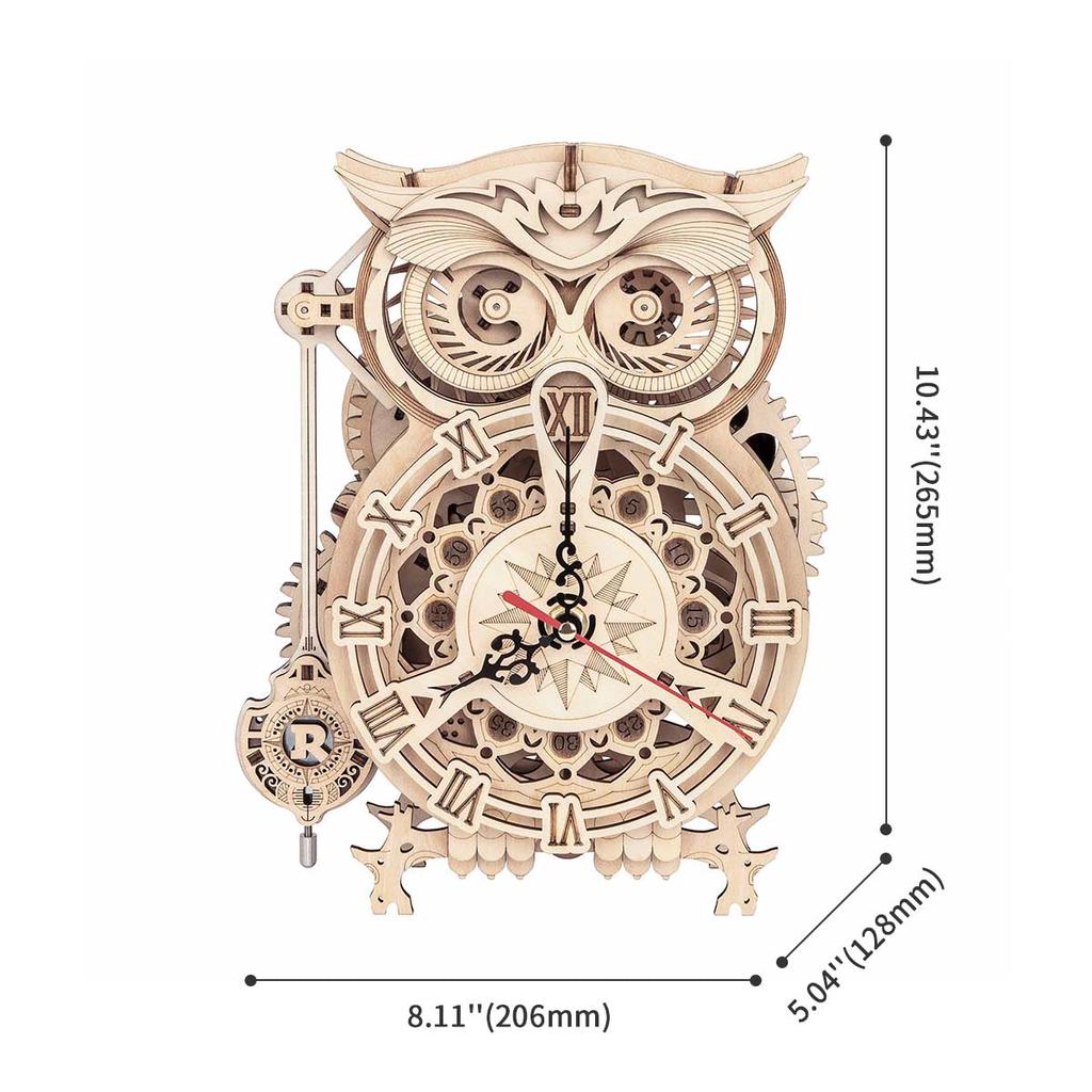 ROBOTIME ROKR Owl Clock Mechanical Gears 3D Wooden Puzzle LK503