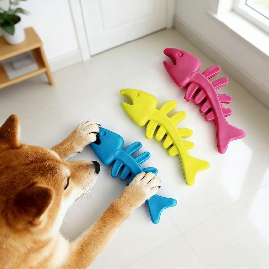 Yousheng Rubber Bone Dog Toy Fish Bone Shape Dog Chew Toy Teeth Cleaning Toy for Aggressive Chewers Interactive Training Fetch