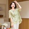 Yuzhaolin New Chinese Style Embroidered V-Neck Short Sleeve Blouse