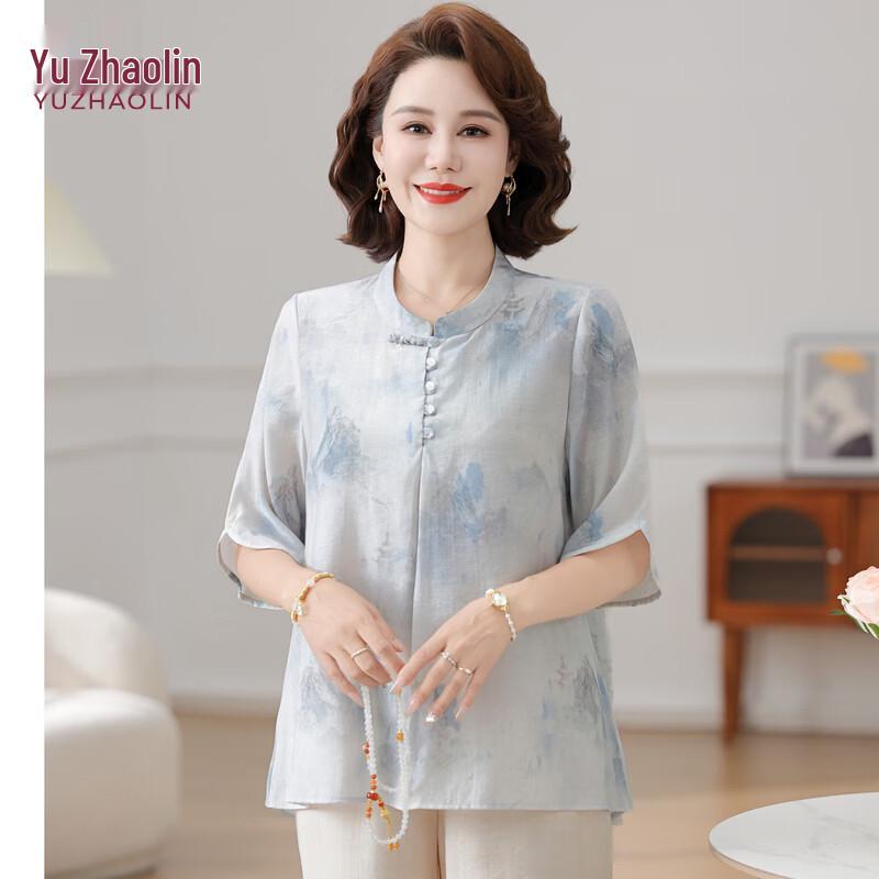 YUZHAOLIN Women's Mid-Aged Cotton Linen Short Sleeve T-Shirt - New Chinese Style Summer 2026