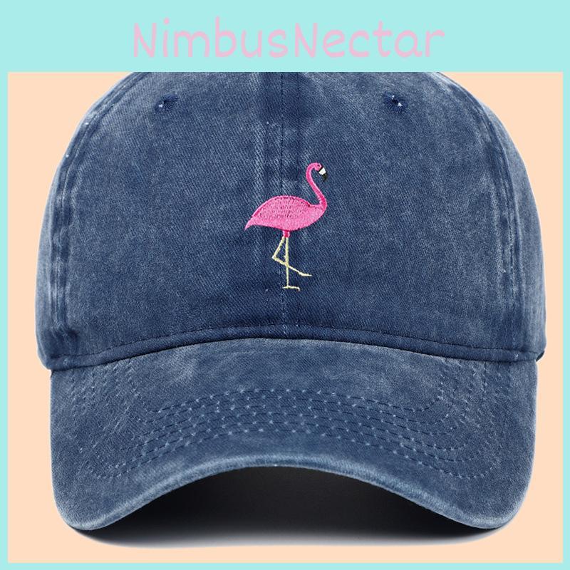 This baseball cap features a vivid flamingo embroidery on a comfortable, 100% cotton washed fabric. The curved brim provides effective sun protection while remaining breathable and lightweight for all-season wear. Ideal for outdoor activities, it helps shield eyes from sunlight and offers versatile style. Wipe clean with a damp cloth to maintain its vibrant appearance.