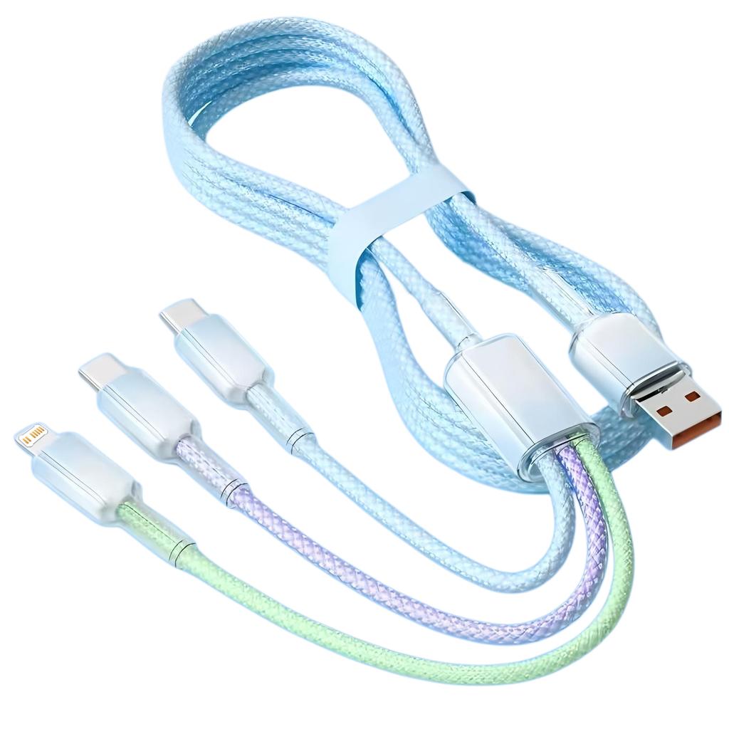 240W Geflochtenes Drei-in-Eins-Datenkabel mit Farbverlauf für Macbook iPhone Samsung Xiaomi Typ-C Schnellladekabel