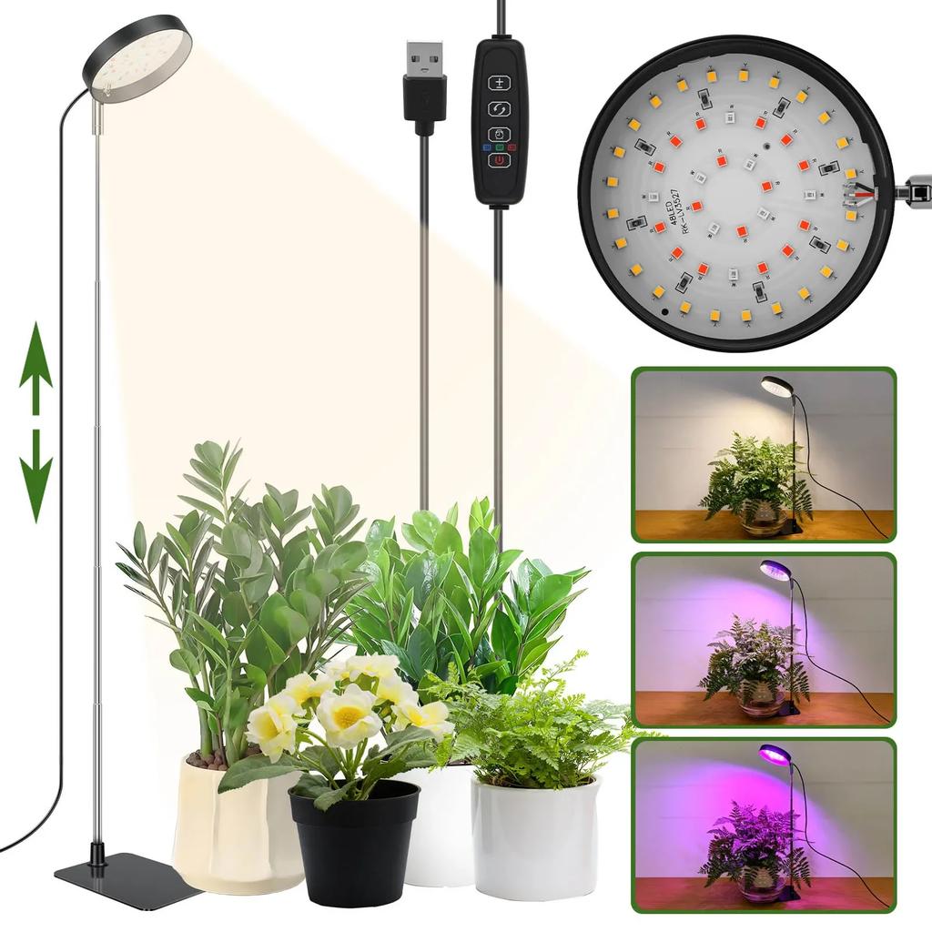 LED Pflanzenlicht Vollspektrum Pflanzenlampe Dimmbar 3 Modi Höhenverstellbar Zimmerpflanzen Licht 3/9/12H Timer 10-stufige Dimmung