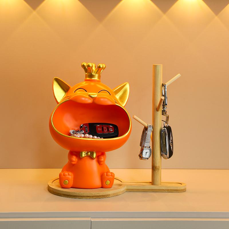 Krone Großer Mund Katze Ornament Freudvolle Reichtum Anziehung Katze Schlüsselaufbewahrung Ornament Haus Schreibtisch Dekoration Einweihungsgeschenk