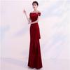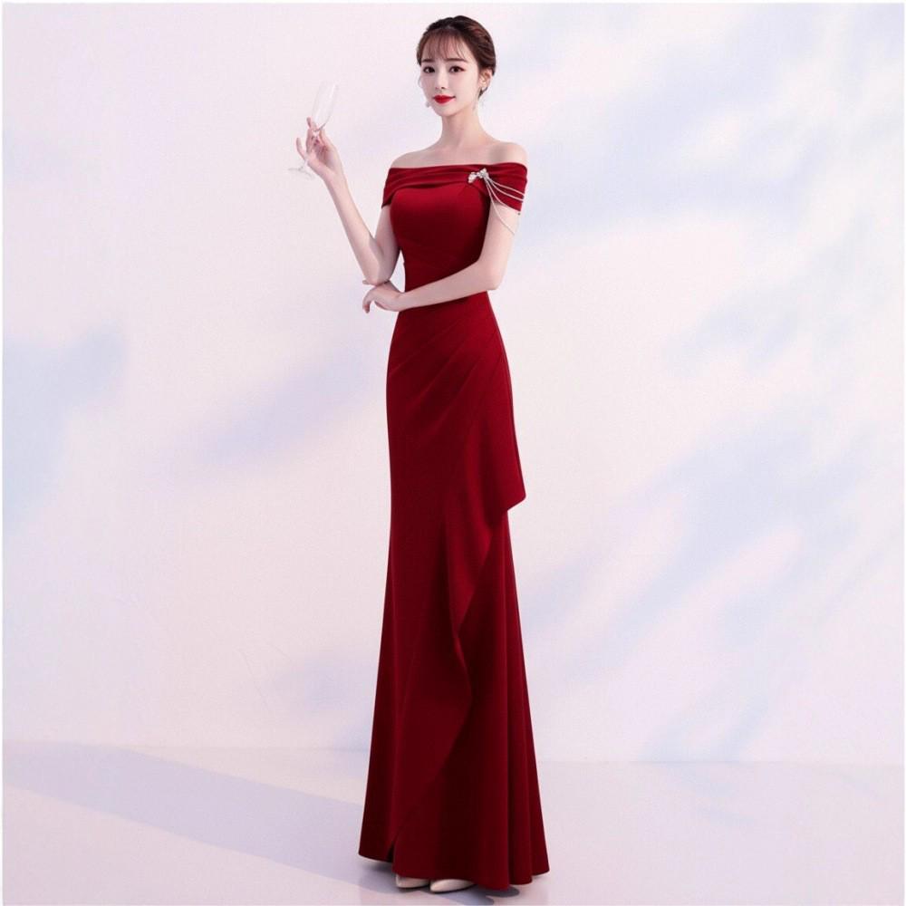 This stunning one-shoulder dress is designed for special occasions like weddings and engagement banquets. Crafted from high-quality polyester, it offers a graceful mermaid silhouette that elegantly highlights your curves. The subtle stretch in the fabric ensures a comfortable and flattering fit, perfect for making a memorable impression.