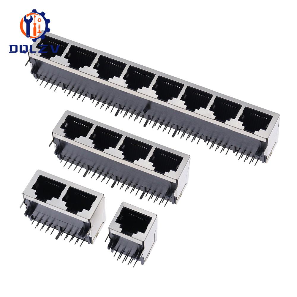 RJ45 1 2 4 6 8 Port Shielded Modular 21MM PCB Jack 8P8C Right Angle Through Hole Pcb Network Connector