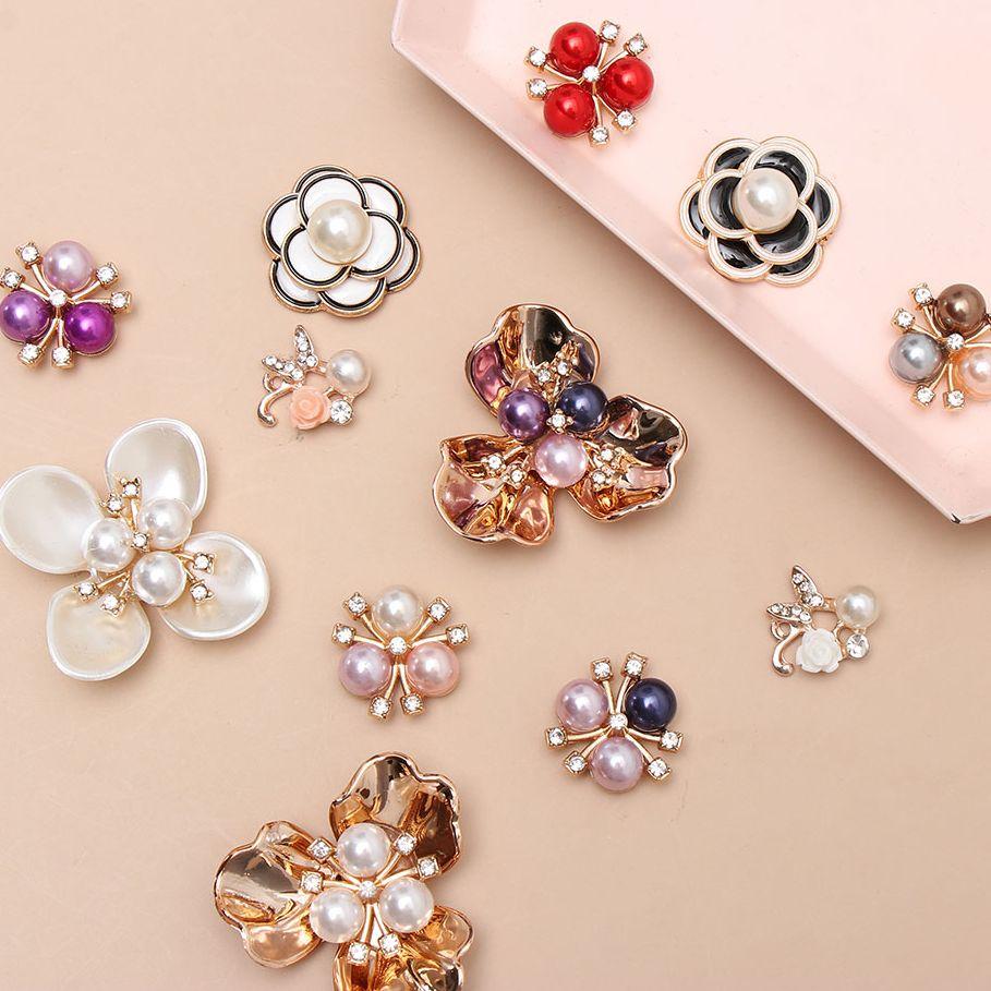 10 Stück Perlenblumen Strassknöpfe Funkelnde Kristall-Haarnadeln Dekoration Knopf Hochzeitsdekoration DIY Kleidung Nähzubehör