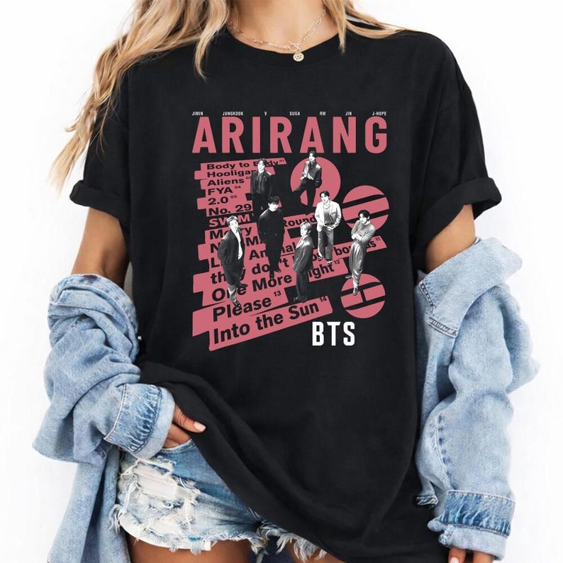 BTS Arirang Welttournee T-Shirt, Bangtan 2026 Konzert T-Shirt, Merch Geschenk für Kpop Fan Hip Hop Streetwear Übergroßes T-Shirt Kurzarm Freizeitkleidung