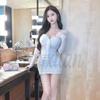 Elevate your evening look with this stunning mesh dress, designed to captivate and allure. Featuring a chic square neck and a seductive lace-up detail, this dress effortlessly combines elegance with a daring edge. The see-through mesh material offers a glimpse of sophistication, while the hip-hugging mini skirt accentuates your curves, ensuring an unforgettable silhouette. Ideal for special occasions or a night out, this dress promises to make a bold fashion statement.