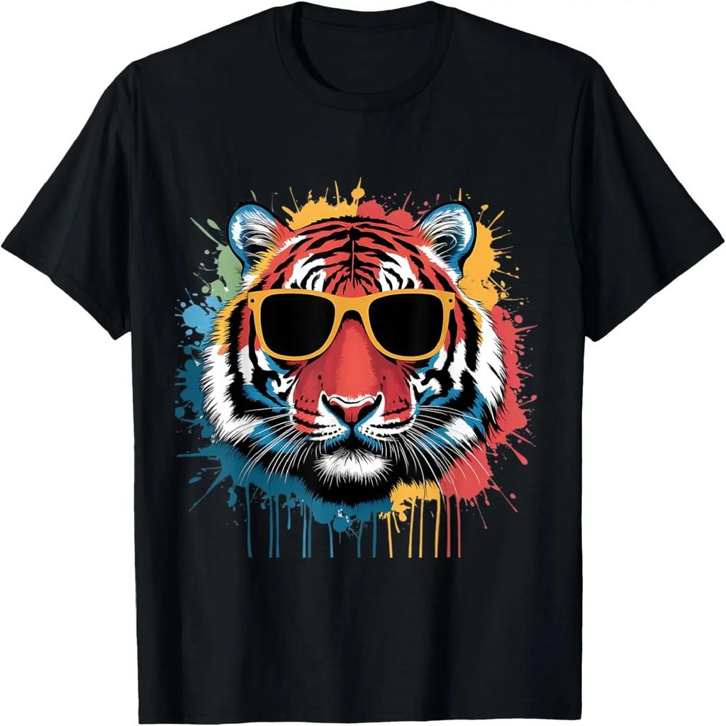 Cooler Tiger mit Sonnenbrille Herren Damen Grafik Tiger T-Shirt (2)