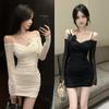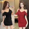 Elegant Off-Shoulder Mesh Camisole Dress for Petite Figures - High-End Bodycon Slip Dress