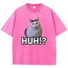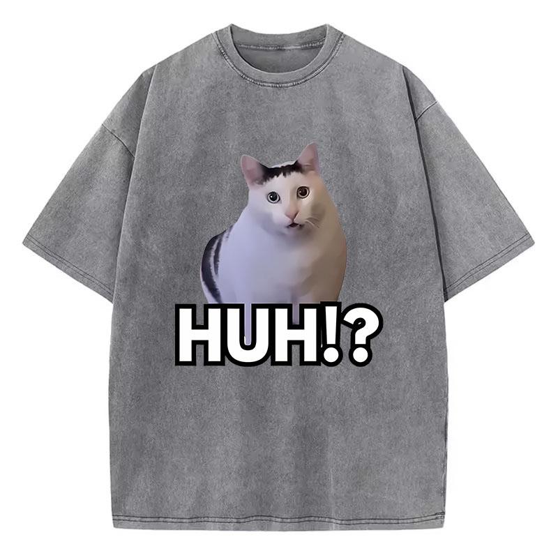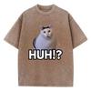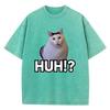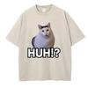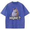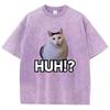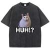 Manga T-Shirt Vintage Gewaschenes Baumwoll-T-Shirt Katze Sagt Huh Anime Grafik-T-Shirt Lässige Streetwear Frühling Sommer T-Shirt