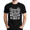 Herren Schwarzes T-Shirt mit Aufdruck Introvertiert, aber bereit, Übernatürliches zu diskutieren No-Cut Transferpapier Druck Baumwoll-T-Shirt