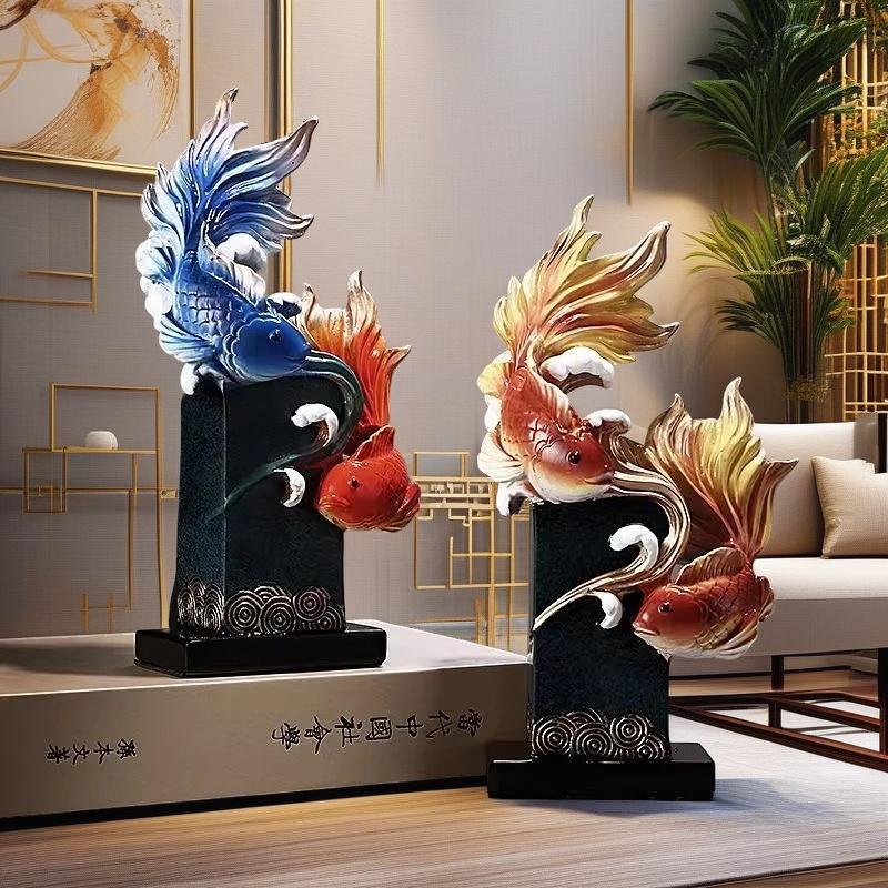 Harz-Arowana-Dekorstatue Handbemalte Goldfisch-Kunstwerke Chinesisches Maskottchen Haus Wohnzimmer Büro Feng Shui Fischornament