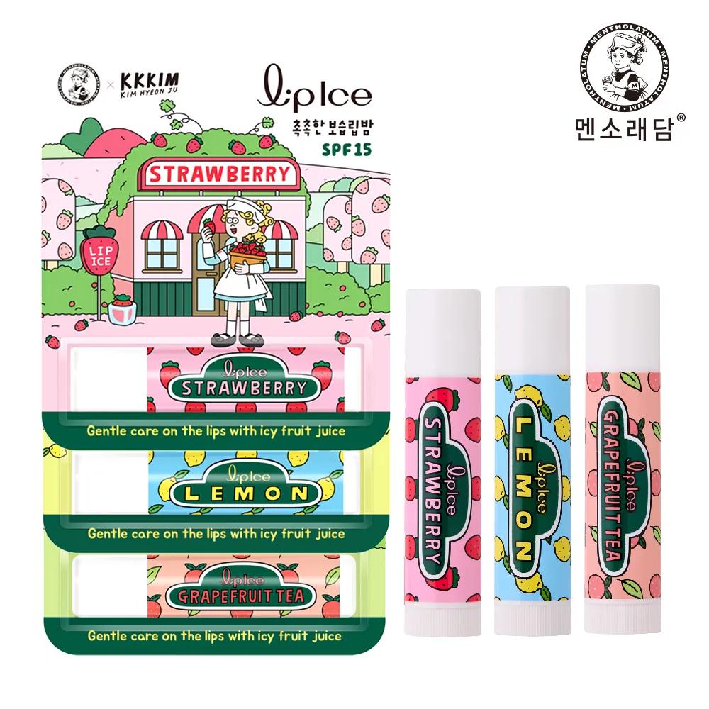 MENTHOLATUM Lip Ice Lip Balm KKKIM x3 (Strawberry/Lemon/Grapefruit)
